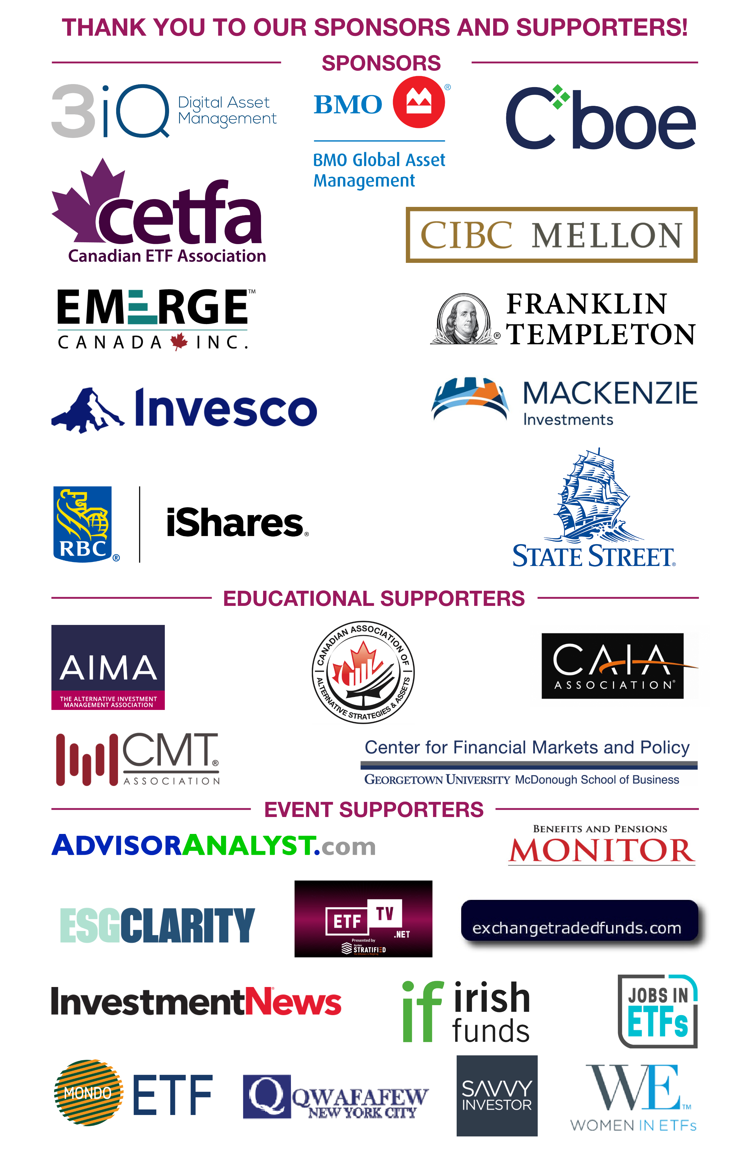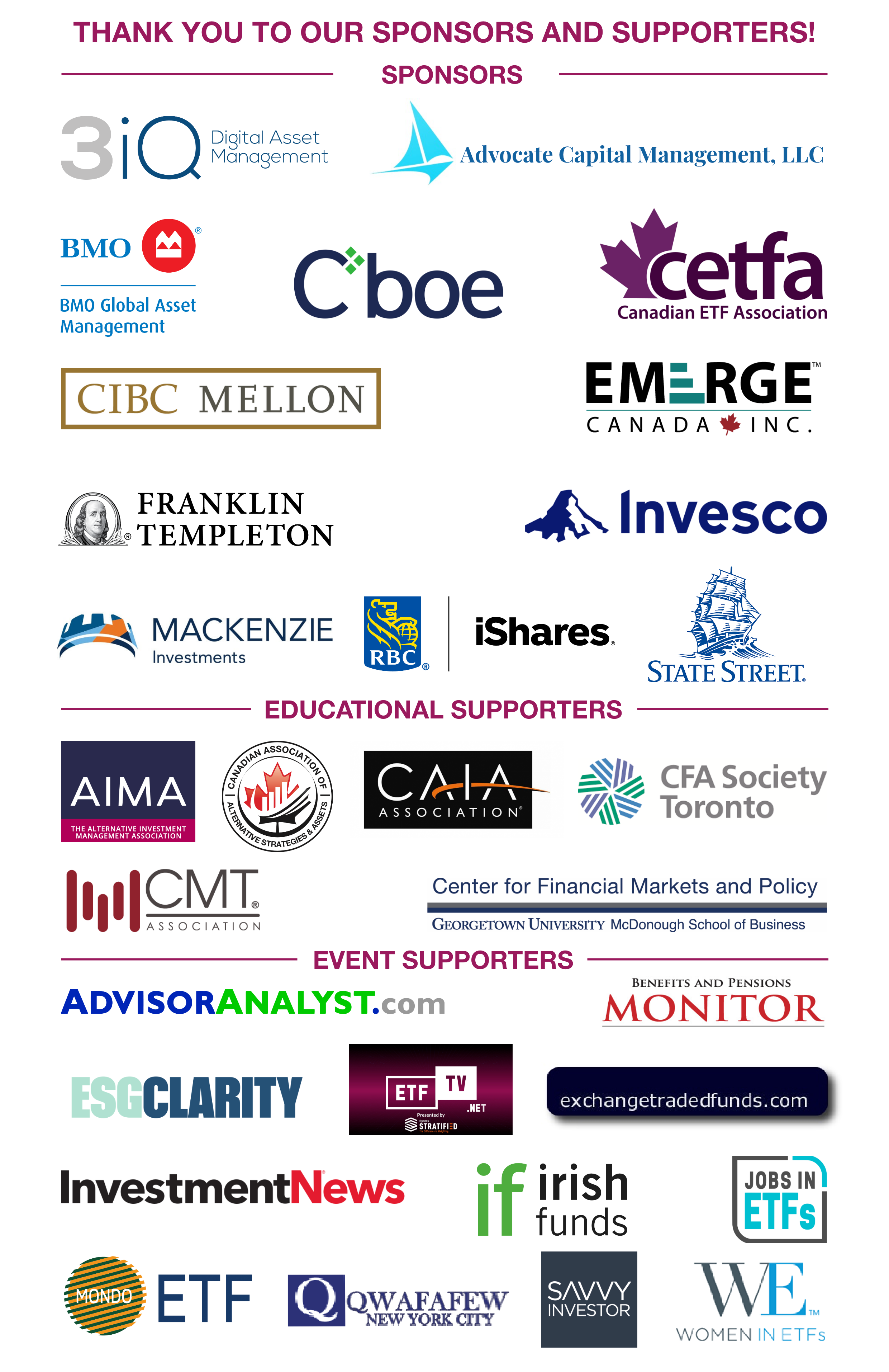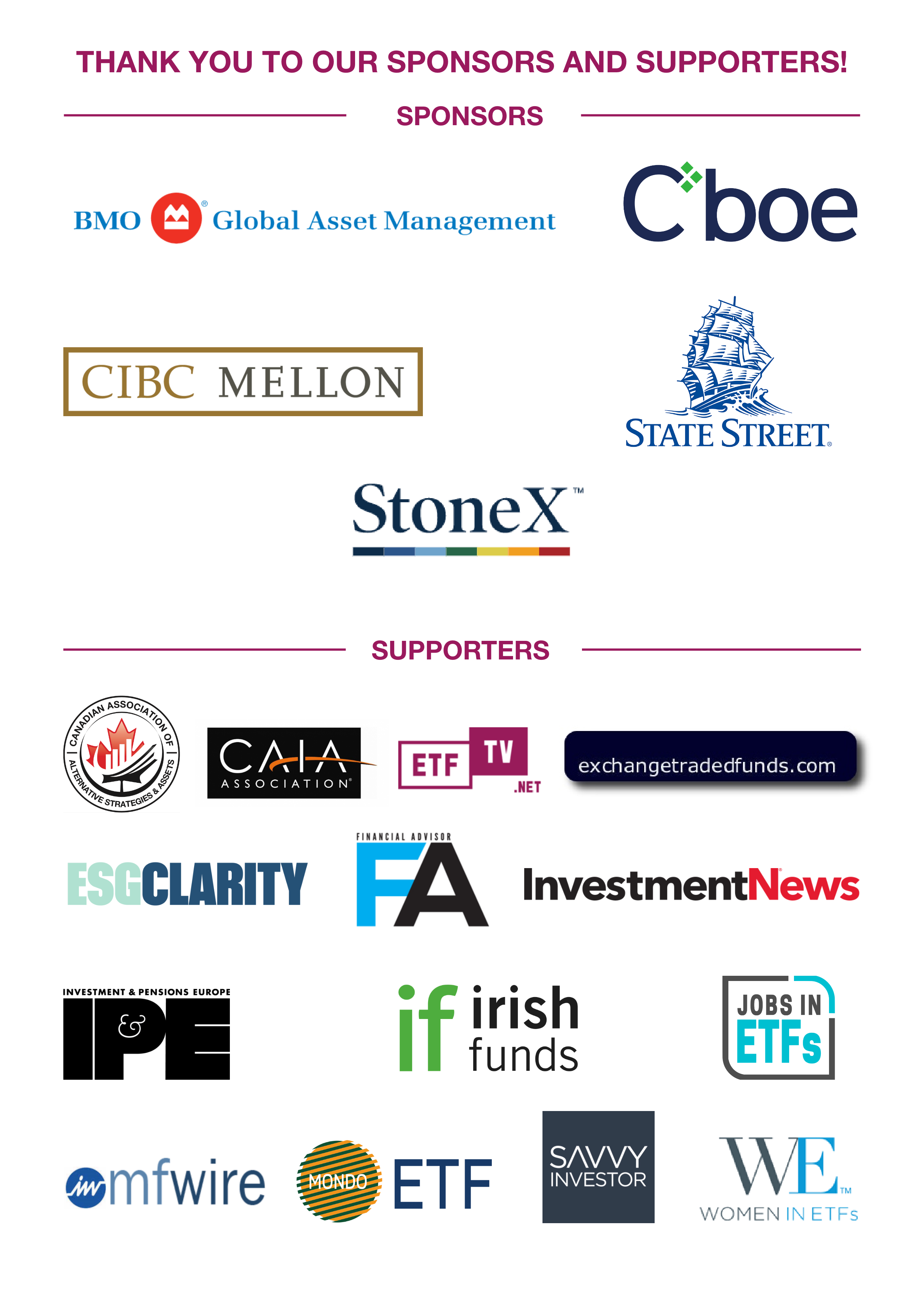 If you are interested in sponsoring, supporting or speaking at our upcoming events in 2021 or 2022 or have any questions, please contact Margareta Hricova at margareta.hricova@etfgi.com and Deborah Fuhr at deborah.fuhr@etfgi.com.