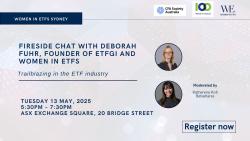 Deborah Fuhr, CFA fellow, Founder and Managing Partner, ETFGI and founder and board member of Women in ETFs Inc and Women in ETFs EMEA and co-president of Women in ETFs EMEAis looking forward to joining the Women in ETFs Sydney for a fireside chat over lunch on Tuesday, 13th May. She will share the background on the launch and growth of Women in ETFs and her remarkable career journey— of creating and producing research on the global ETF industry for 11 years at Morgan Stanely, where she was a Managing Director, to joining Barclays Global Investors / BlackRock as a Managing Director to create Global ETF industry, to founding ETFGI to produce independent subscription research on global trends in the ETF industry, 6 annual regional events to discuss how investors are using ETFs in the countries around the world, where they are listed, and producing ETF TV.