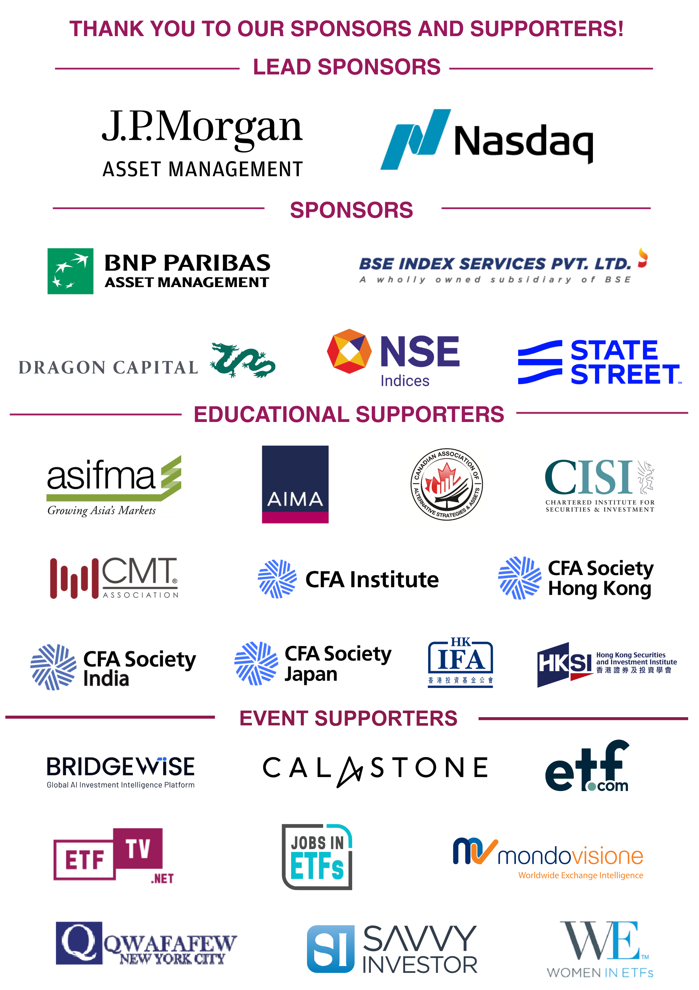 If you are interested in sponsoring or speaking at any of our upcoming events or have any questions, please contact us deborah.fuhr@etfgi.com and margareta.hricova@etfgi.com.