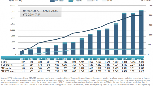ETFGI reports assets invested in US listed ETFs and ETPs rise to US$3.63 trillion at the end of January 2019