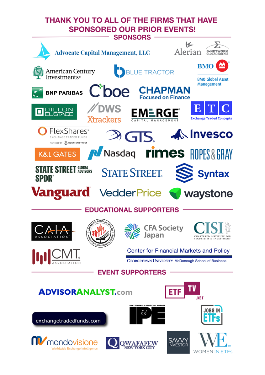 The summit is designed to provide the opportunity for traders, portfolio managers, and advisors at buyside institutional investor and financial advisors to examine how ETFs are being selected, used and traded by institutional investors, financial advisors and by retail investors. Hear about the most current regulatory updates from the SEC and IOSCO. Updates on index and product trends: active, fixed income, ESG, Thematic, bitcoin, crypto, and trading developments that are impacting investors in United States.