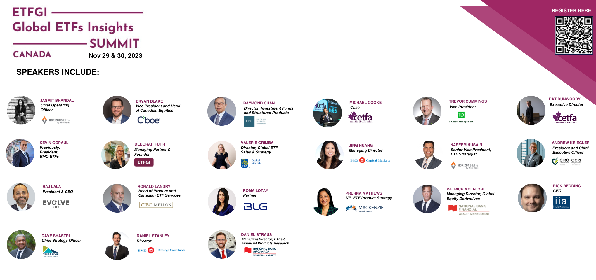 Announcing speakers for the 5th annual ETFGI Global ETFs Insights Summit Canada - Nov 29th in person in Toronto and Nov 30th virtually