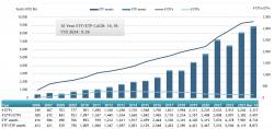 - Assets invested in the ETFs industry in the US have increased 9.3% YTD in 2024, going from $8.11 Tn at end of 2023 to $8.87 Tn.