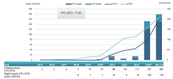 The first Crypto ETP was listed in 2015, at the end of November there are now 405 products with 942 listings, assets of US$179.16 Bn, from 75 providers listed on 29 exchanges in 22 countries.